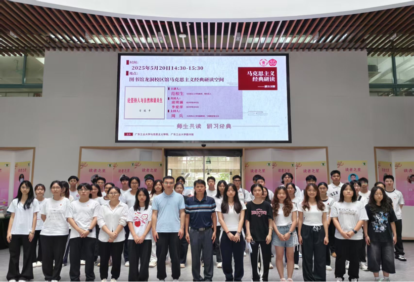 5月20日下午,由马克思主义学院和图书馆主办的马克思主义经典研读第53期在龙洞校区图书馆马克思主义经典研读空间举行。本次活动研读的著作是《论坚持人与自然和谐共生》。活动由马克思主义学院教师、青年百人范根生领读,经济学院本科生邱琪涵、李爱萍共读,经济学院本科生及马克思主义学院研究生等60余人参加。马克思主义学院周兵老师主持活动。