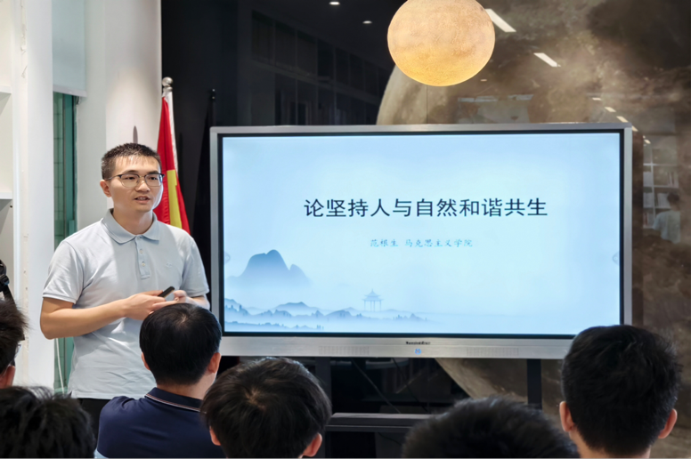 范老师从“当我们在谈论生态文明时,我们在谈论什么?”“习近平生态文明思想的形成与发展历程”“习近平生态文明思想对传统生态文化的转化与发展”三个部分展开详细解读。他指出,习近平生态文明思想作为习近平新时代中国特色社会主义思想的重要组成部分,意义重大。在全面建设社会主义现代化国家的新征程中,深入贯彻习近平生态文明思想,坚定了“绿水青山就是金山银山”的核心理念,对于我们夺取全面建设社会主义现代化国家新胜利、实现中华民族伟大复兴的中国梦,具有不可替代的重要指导意义。