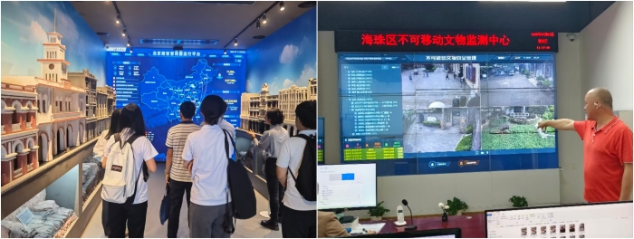 最后一站学员们来到了越秀区、海珠区的文物监测中心等单位了解重点文物的保护情况。北京街的数字管理平台,将辖区的文物保护与街区的防盗、垃圾清运、车辆违停、流量管控等日常治理高度融合。海珠区文物监测中心,制定文物数字档案,将温度、湿度、风力等作为监测指标与视频监控相结合,形成了全天候的文物保护机制。