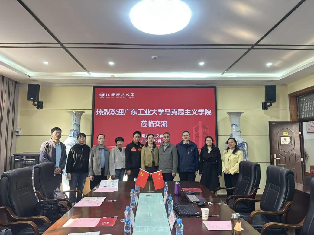 12月2日至3日,交流团一行抵达南昌,与江西师范大学马克思主义学院进行了深入的教学研讨。此次交流活动得到了江西师范大学马克思主义学院的高度重视和热情接待。该院副院长彭坚、思想道德与法治教研部主任曾永平副教授、覃杏花副教授,党政办负责人李启峰主任以及相关教师代表参与了座谈。