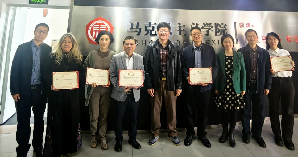 苏一凡主任为我院关工委班子颁发了聘书。聘任学院党委书记郑鹏为学院关工委主任,聘任揭晓院长、黄蓉芳教授、梁国喜副教授(已退休)为学院关工委副主任;聘任研究生王荟荟为学院关工委学生委员。